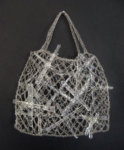 hand-crocheted wire & fused glass, size: 195 x 175 x 30 mm