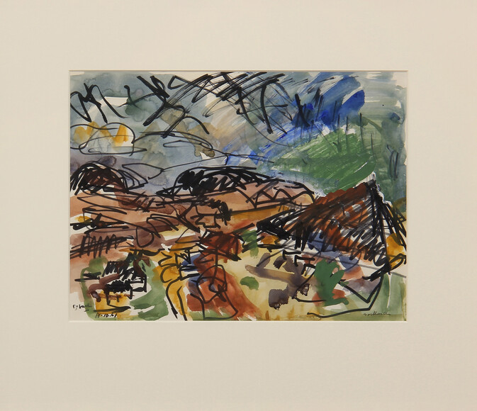 watercolour, felt pen on paper, mat: 450 x 525 x 8 mm, visible image: 270 x 365 mm