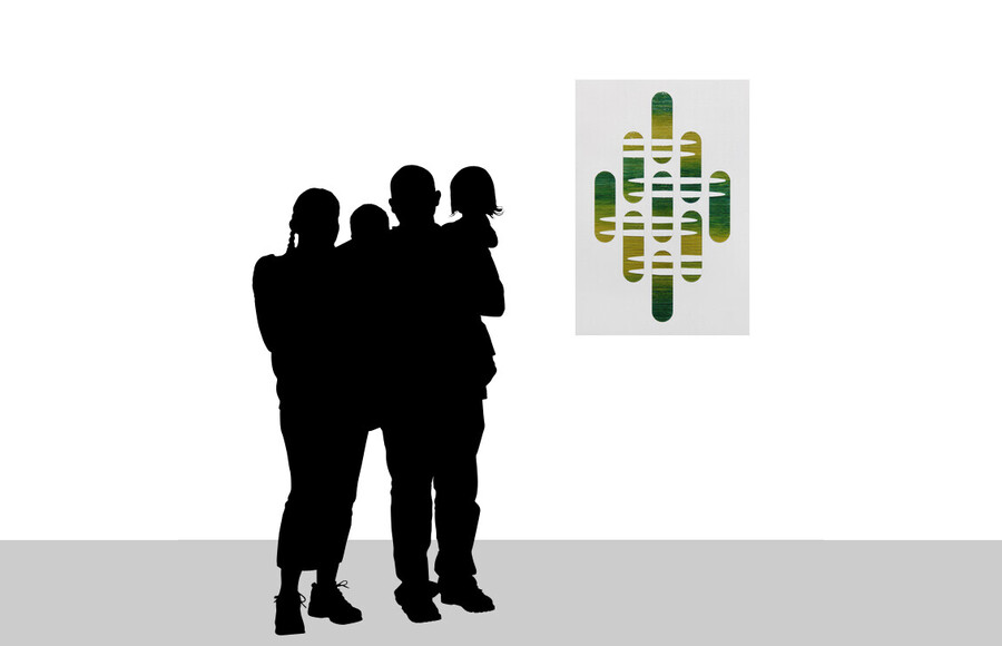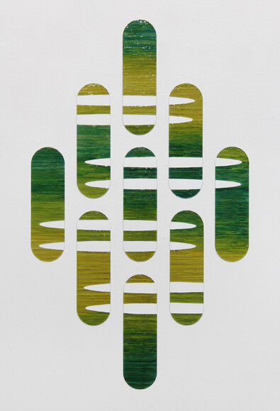 9 pieces; ink, acrylic, polymer resin on stainless steel, size on wall: 900 x 530 mm