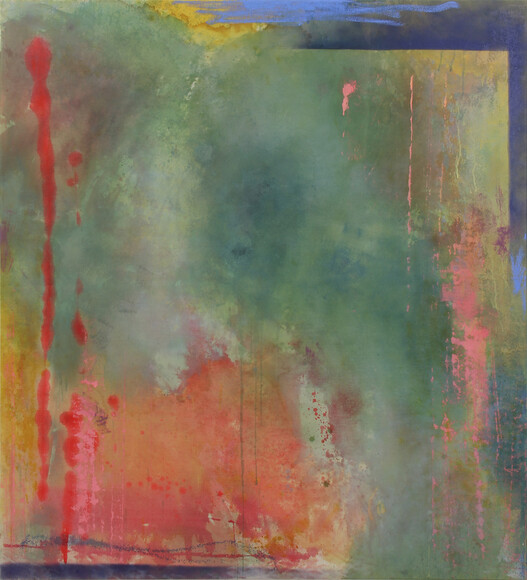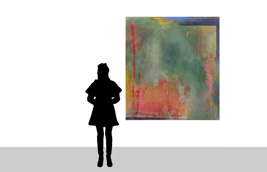 flashe, acrylic, spray paint, oil stick on raw canvas, stretcher: 1703 x 1557 x 40 mm