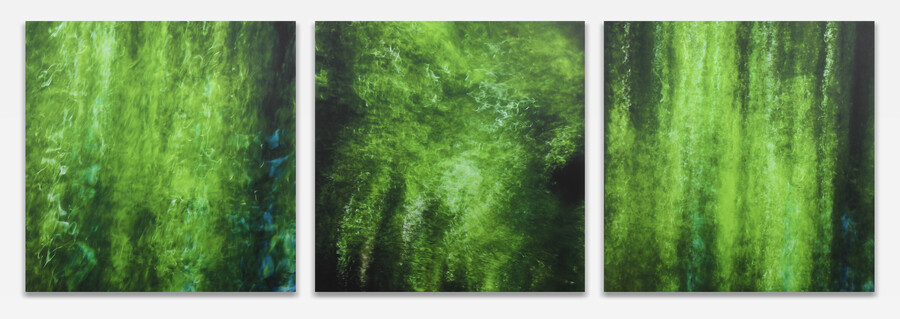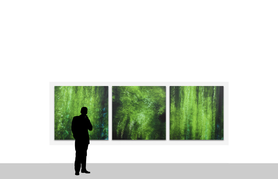 triptych; cast vinyl film, lacquer on shaped and contoured wood panels, size on wall: 1400 x 4400 x 40 mm, panels: 1400 x 1400 x 40 mm each