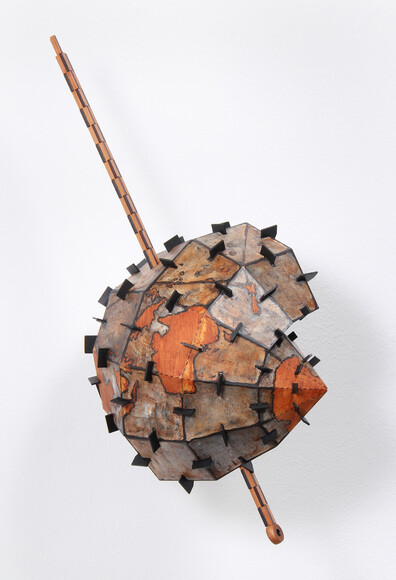 bamboo, acrylic, kakishibu dye, size on wall: 550 x 310 x 260 mm