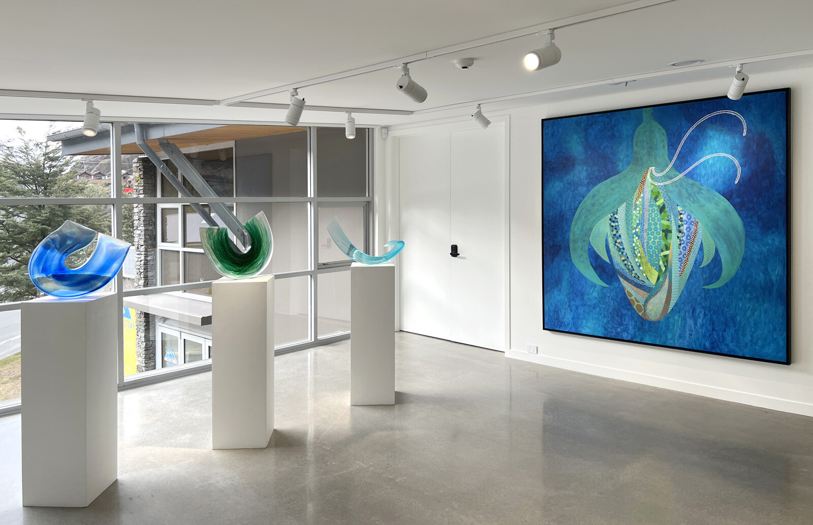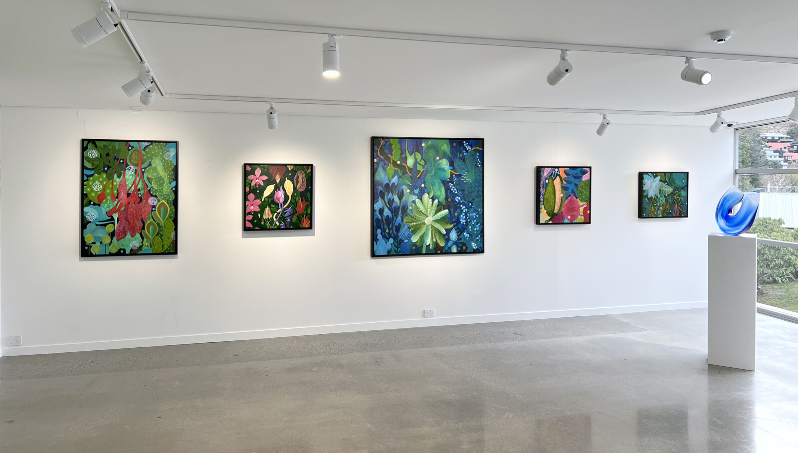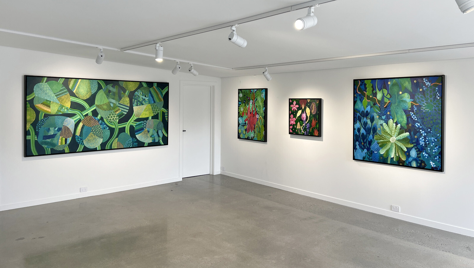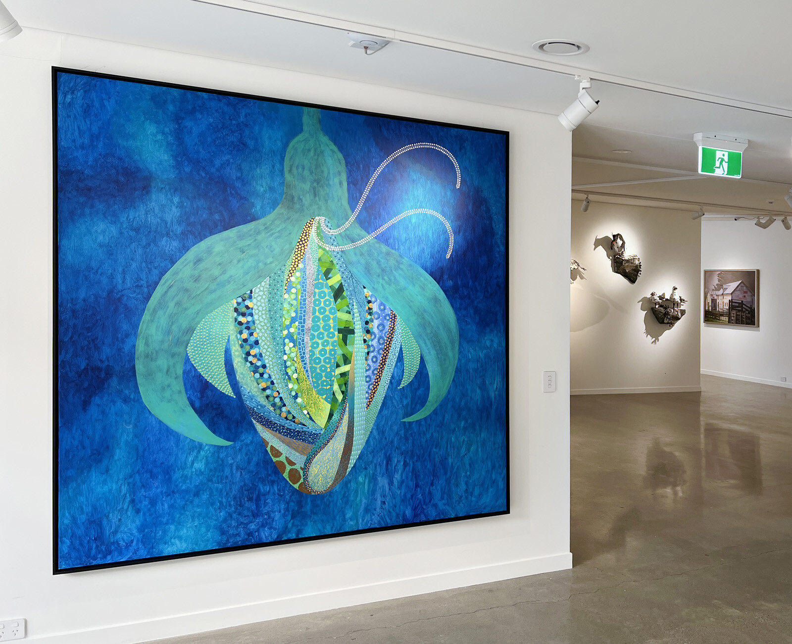 Michael McHugh is still relatively new to the creation of art, but his works show a depth and maturity beyond many who have been in the business for decades. Fields of wild abstract shapes mesh perfectly with meticulous, almost obsessive, detail work. The intense luminous patterns of the epic Pollinator have a focussing quality that complements the shifting nebulosity of the background, which seems to recede into an indeterminate distance. Spring Forward, with its collage-like foliage of dot and vein patterns perfectly balances on the line between pop art and op art.