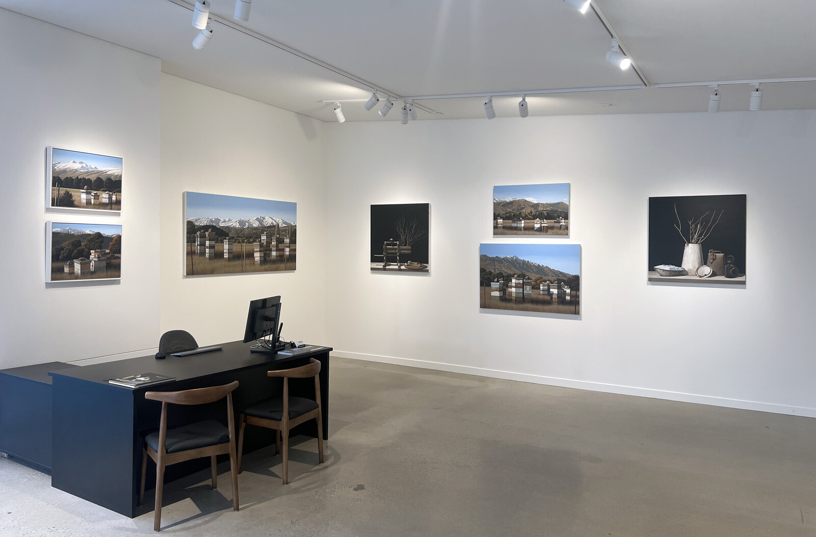 For many years, Michael Hight has had two major strings to his artistic bow: sweeping, grandiose New Zealand landscapes with a foreground focus on beehives, and "Nocturne/Black Shelf" still lifes featuring small assortments of farm equipment and other ephemera. As often as not, the two genres have sat in separate exhibitions, sharing their own languages.