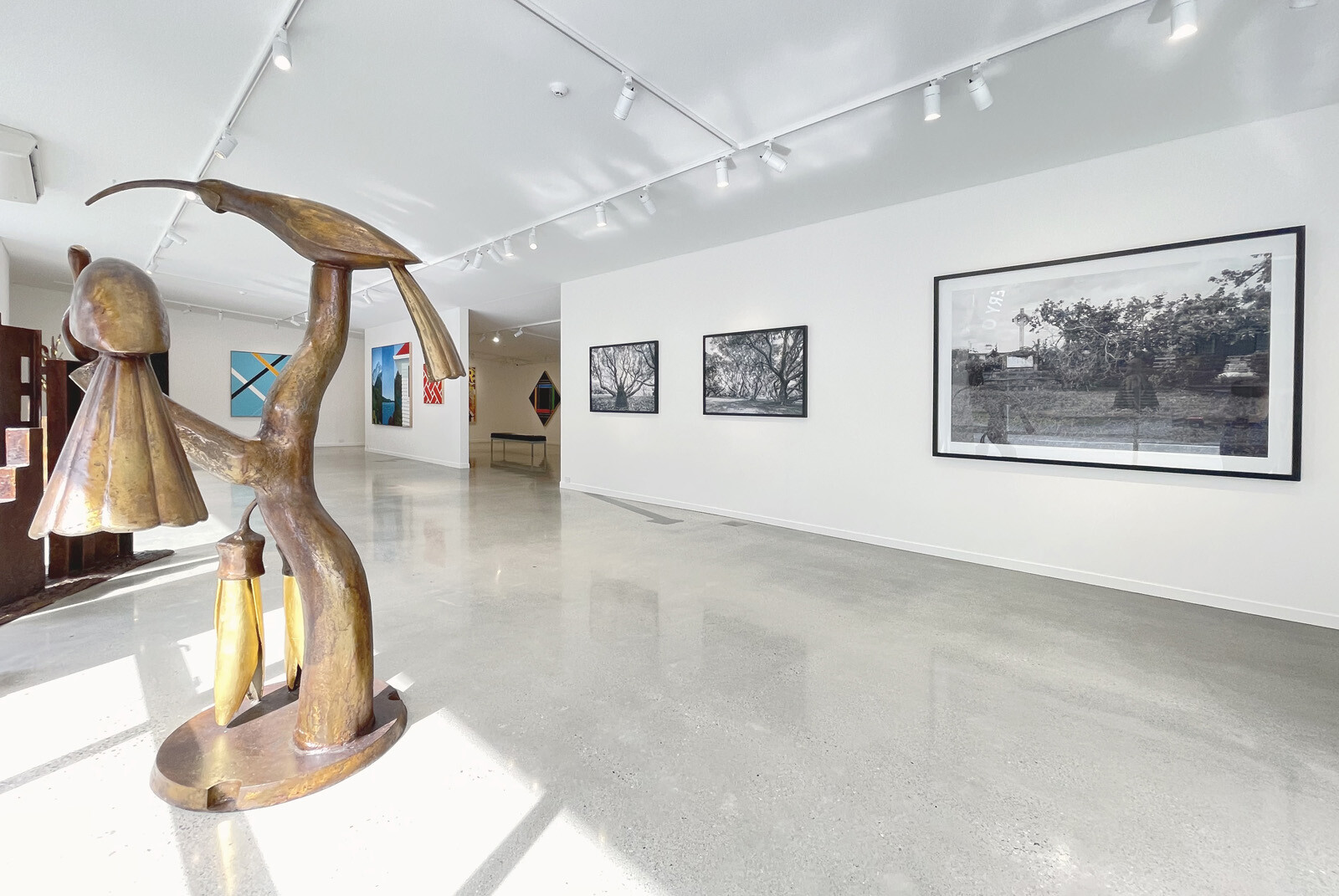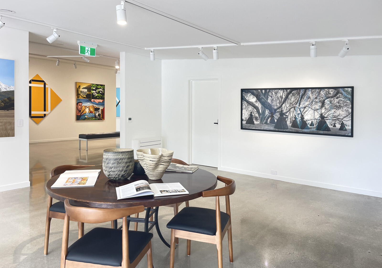 Conveyance of Time is paradoxically both simpler and more complex than a lenticular photograph yet – conceptually – it owes much to the process. Holding various Pacific cultural symbols and signifiers, Kihara wonderfully deepens the pictorial space by populating it while the waving, tendril arms of numerous Pohutukawa posit the scene as unmistakably New Zealand.