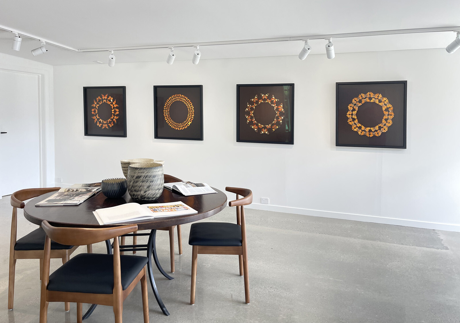 Four new Aotea’ula garlands link butterflies across time and place to the fate of 27 unnamed men from the New Hebrides (now Vanuatu) who, in 1870, were blackbirded to New Zealand where they were forced to work in the flax mills of Auckland for a pittance. They never saw their homeland again. Acting plurally as adornment lei, memento mori and Pacific symbols of friendship, significant narrative layers emerge including dialogues about transience and nature alongside the poignancy of pattern and beauty.