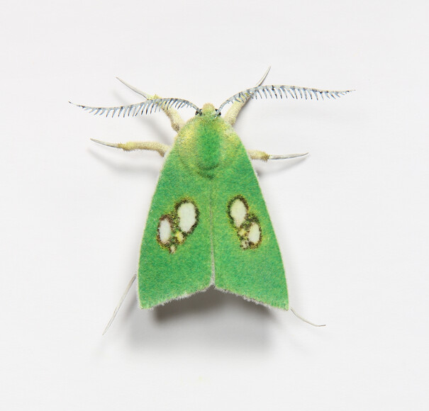 cast bronze, etch primer, tinted epoxy adhesive, hand painted nylon flocking, powdered Schmincke pigment, acid etched stainless steel, Flasche vinyl paint, size: 70 x 75 x 26 mm