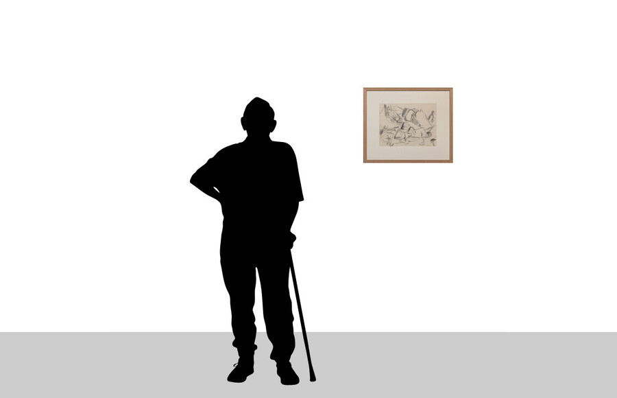 pencil on paper, frame: 470 x 557 x 20 mm, mat window: 265 x 355 mm