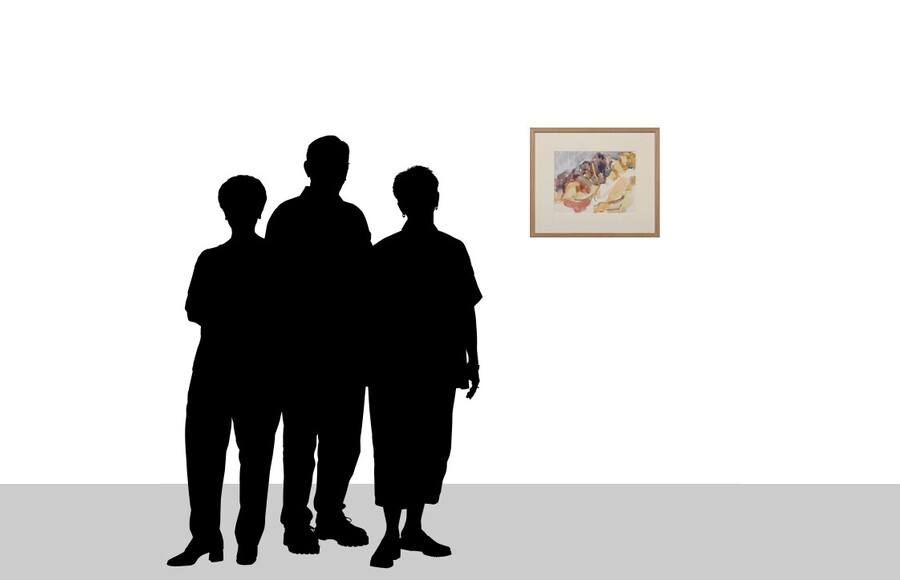 watercolour on paper, frame: 470 x 557 x 20 mm, mat window: 265 x 350 mm