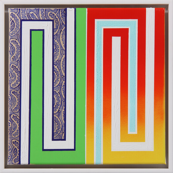 oil, enamel on canvas, frame: 452 x 452 x 58 mm