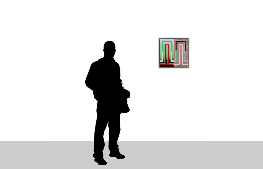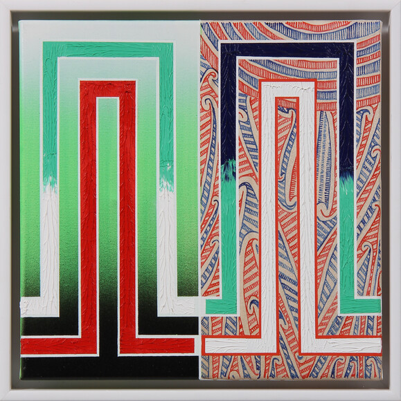 oil, enamel on canvas, frame: 452 x 452 x 58 mm